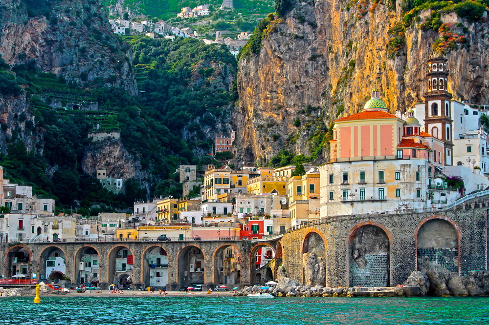 Tiriamo ora i remi in barca per attraccare ad Atrani, in provincia di Salerno. Un incantevole e minuscolo borgo a picco sul mare fatto di vicoli, piazzette, scalinate, archi e cortili risalenti al periodo Medievale. Valori aggiunti: le grotte di Masaniello e quella del Santi, la Spiaggia Piccola con le lampare e le imbarcazioni per la pesca ormeggiate.